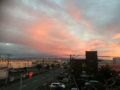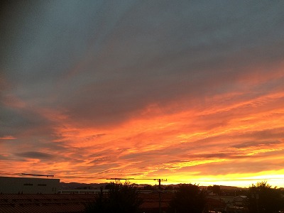 今朝の気温13℃と肌寒い週末の朝を迎えました。それでも、日中は暖かくなる予報です。昨日は、会議の日でした。このコロナ騒ぎの中ですが、各部が様々な企画を持ちより取り組んで居ますが、自粛の影響は大きいですね。製品を見て触れていただき、お買い上げいただく事が多いのですが、Web上で安心してお買い上げいただけるブランドとして頑張らなきゃ。さて、昨日会議後夕空が真っ赤に燃えていたので、写真の建物の一番上に登り写して来ました。歳のせいか、足がスースーします。「夕焼け」って、確かに字の通りですね。