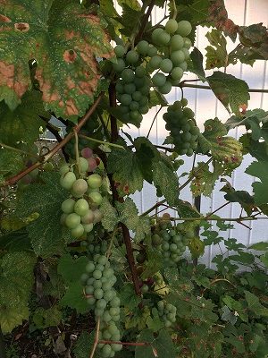 台風10号による沖縄、九州地区をはじめとして被害にあわれた皆様にお見舞い申し上げます。地域地域によって起こる災害も、今までに経験のない被害が毎回毎年繰り返しますが、なすすべが無いものかと思います。とわ言ったものの私自身、直面していないので大変さもわかっていないと思います。暑さの方と言えば水曜日までは30℃を越える予報ですが、それ以後は秋の訪れを感じるのでしょうか。昨日、幼虫から育てていたカブト虫をサクランボの木に放してあげました。飼育していた容器のたい肥の中から小さな小さな卵と思われる粒を10個ほど見つけ、たい肥の中に入れました。来春顔を出してくれるでしょうか。また、3種類のぶどうも沢山実を付け、ご近所にお裾分けできるのか楽しみです。