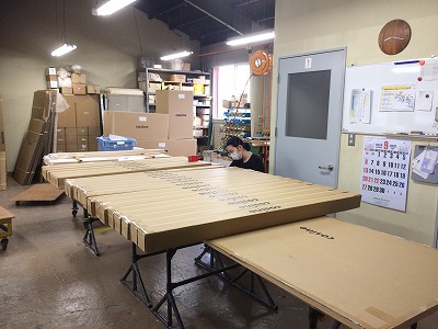 今朝は、小雨が降って居ます。気温も昨日と比べ10℃近く低いのですが、昨日の暑さが社内にこもっていて、蒸し風呂のようです。ここしばらくは涼しそうです。工房にメンテナンスで里帰りしたスクリーンがありましたが、すっかり日焼けしていい感じです。上に乗っている丸棒が元々のナラ材ですから、お客様と共に過ごしてきた様子を感じます。長く大切に使える木の生活道具として引き続き使っていただける事に感謝します。