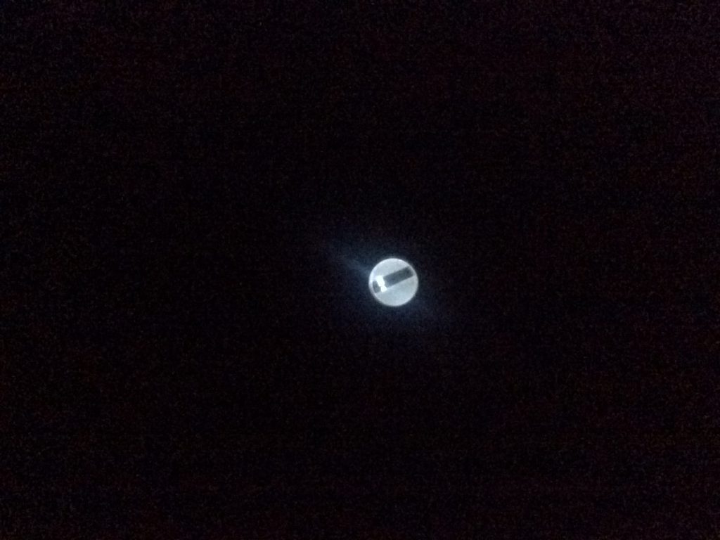 今朝の気温5℃でしたが、徐々に寒くなて来ているので驚くような寒さを感じなくなっています。峠では、積雪の予報も出ています。標高の高い山々の広葉は終わりのようで、見に行く時期を逃してしまいました。昨日、帰宅の際に写した紅葉したモミジですが、写真では綺麗に表現できていませんが、綺麗。もう一枚は、月ではありません。煙突の下から上に向かて写したものです。そろそろ薪ストーブに活躍してもらわなければならない時期になったので、メンテナンスをと思い、煙突の中のススの状態を確認するために写して見ましたが、この写真では判断が付きません。さて、どうしたものか・・・。