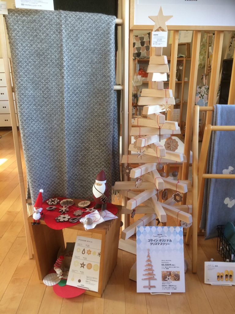 直営である、コサイン旭川本店、コサイン青山は定休日を頂いています。各ショップでは既にクリスマスです。オリジナルのツリーとリースを展示販売しています。