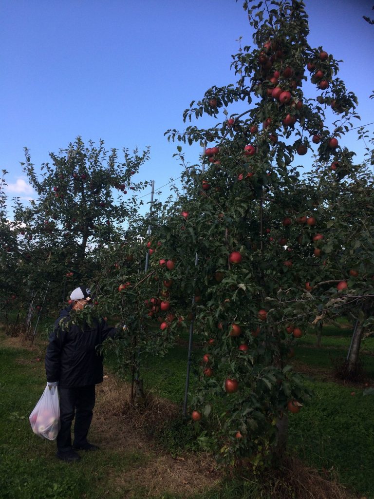 先日の日曜日、毎年恒例のリンゴ狩りに家族と恩師のご夫婦と行って来ました。お天気も良く、真っ赤に実ったリンゴを収穫する事ができました。今年はリンゴの表面が黒い点が付く病気になり、地方送りはお断りしているそうです。表面だけなのですが、嫌な人はいやですからね。皆で袋をもらい思い思いの木からリンゴを取りました。中にはまだ早い種類もありましたがおかまいなしです。(笑)リンゴ狩りの後、園のお母さんに勧められ、リンゴ園の脇にある大きな栗の木で栗拾いも楽しんで来ました。ススキが揺らぐ中楽しい一時でした。皆さん、収穫の秋を楽しみましょう。