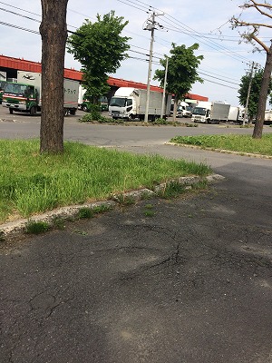 コサイン社は緑地帯の並びにありますが、成長した針葉樹の根が歩道の下まで伸びて来て、アスファルトを押し上げて居ます。根は、枝と同じくらい伸びると聞いた事があります。植林され50年は経過しているので、ぼこぼこです。また、コサイン旭川本店の脇には、サクランボの木が有るのですが、なぜが実がなるまえに落ちてしまいますが、わかりません。
