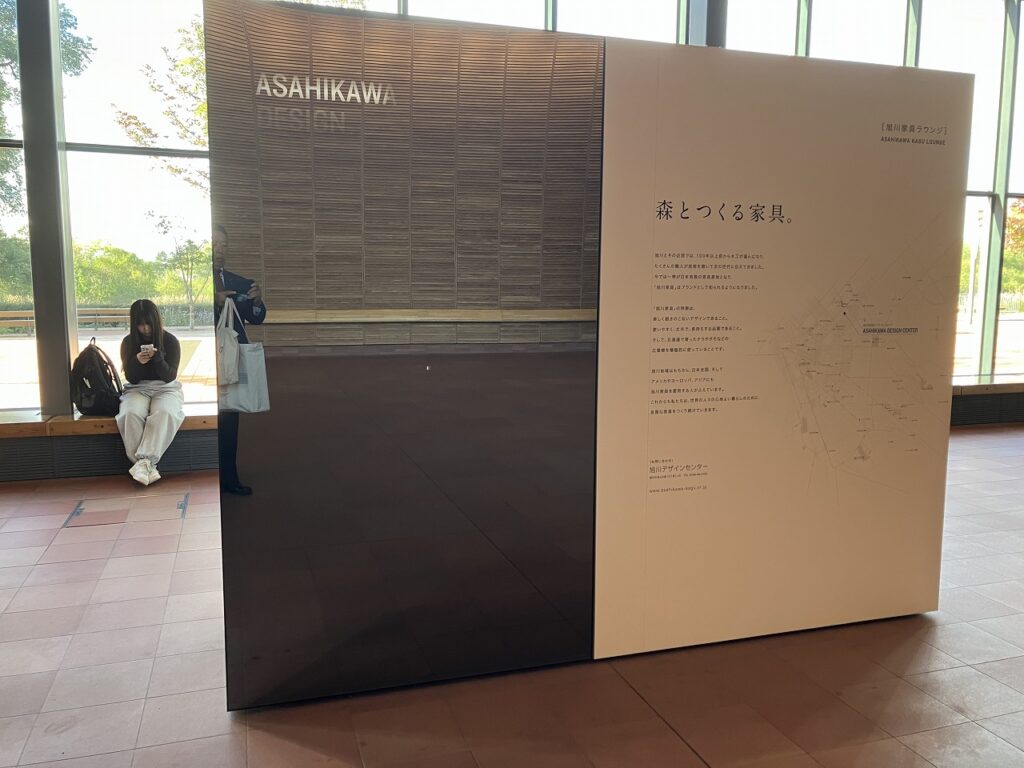 旭川駅構内には、私たちが誇る旭川家具が設置されています。ベンチやテーブルなど、普段何気なく使われている中で、「これが旭川の家具なんだ」と知っていただけるモニターも設置されています。旅のひとときに触れる家具が、少しでも温かさや心地よさをお届けできたら嬉しいです☺️