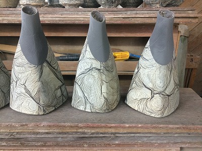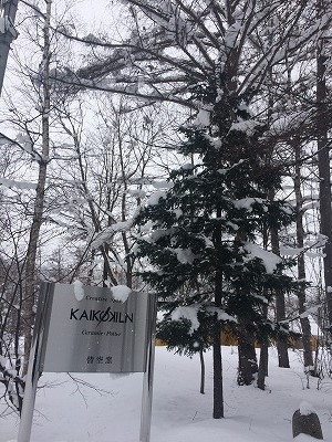 白金温泉に向かった理由は、陶芸家の南正剛さんにお会いする事でした。美瑛で話題の青い池に近いところに工房「皆空窯」があります。自然の木々に囲まれた中にギャラリーを隣接し、休日にはワークショップも開催されています。 作風は厳寒期(マイナス10℃以下)の屋外での施釉時に釉薬中の水分が凍る事で出来た文様をそのまま焼付けて生まれた器「氷裂」です。生まれ育った北国の風土が持つ「厳しい冬」を意識し「この地に根ざした陶芸作品とは」〉をテーマに数十年来作陶を続けています。