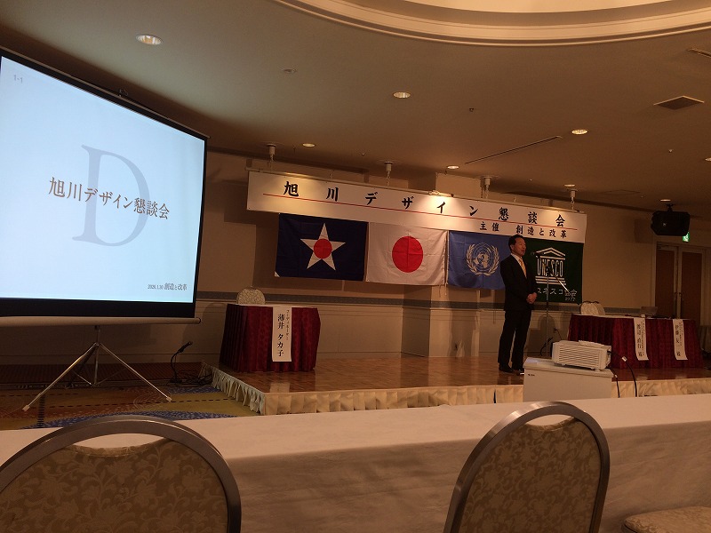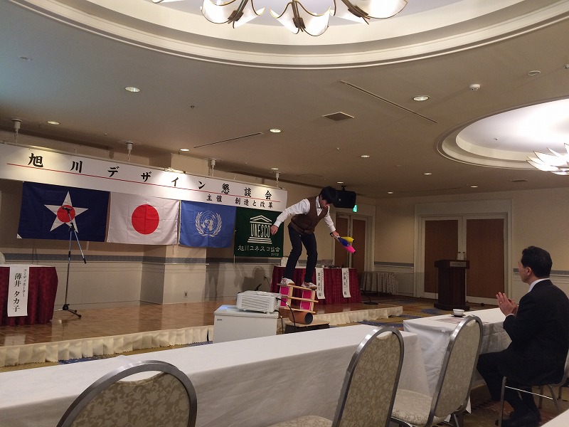 昨夕、旭川市内のホテルにて、創造と改革主催による「旭川デザイン懇談会」が開催されました。オープニングでは、旭川東高等学校2年生による「高校生ジャグラー」余興。続いて、来賓である西川旭川市長挨拶と続き、懇談会になりました。より多くの「市民の方にデザインとは?」を知っていただく事で、 昨年10月、国連教育科学文化機関(ユネスコ)の「創造都市ネットワーク」デザイン分野での認定を受けた事、旭川にモノづくり大学を必要とする意義を理解していただきたい一つと思います。2月12日には、旭川大雪クリスタルホールにおいて、ユネスコデザイン都市認定記念のセミナーが開かれます。