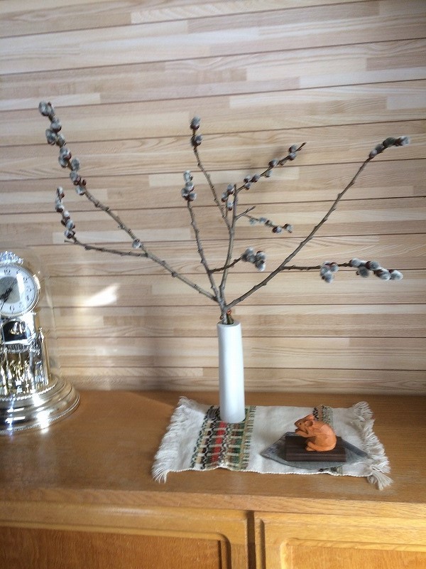 3月最終日も上川晴れです。朝刊上川版の2面に帯状に白鳥が田んぼに飛来している様子が載って居ました。毎年、同じ田んぼとは限らず、日曜日母と妻を連れて白鳥を見に行きました。また、午前中にはコサインの森に行き、ネコヤナギを見つけてきました。