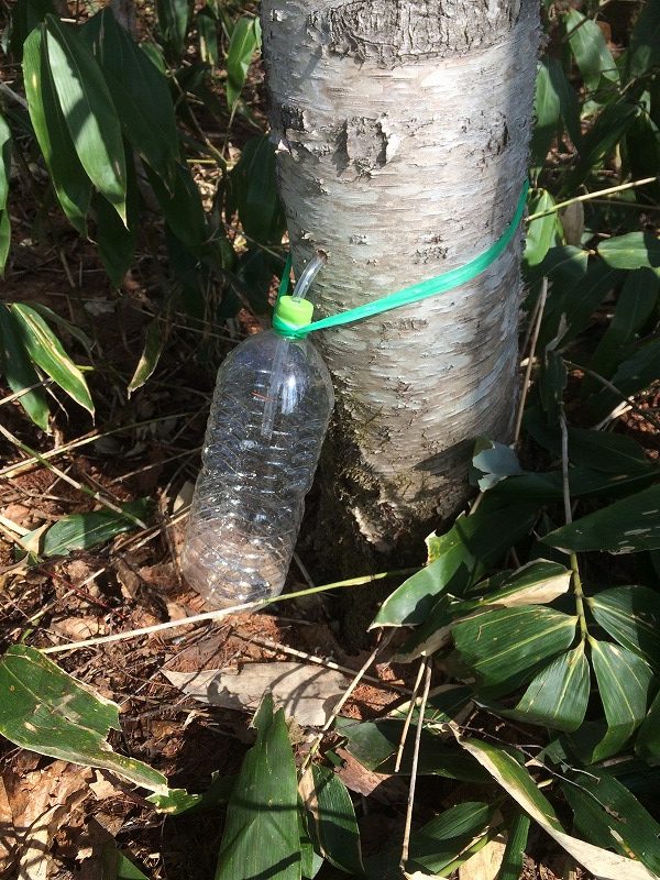 そんな、こんな中で11日の土曜日に、コサインの森に白樺の樹液採取に行って来ました。自然の空気をお腹一杯吸い込んで来ました。雪もわずかになって居ましたが、カンジキが必要でした。シカの毛やフンがところどころで見かける事も出来ました。また、小川の水の流れる音、小鳥のさえずり、そして天高く伸びる木々と青空と白い雲、ぜ~んぶ私の為にあるようでした。白樺樹液も2時間ほどで2Lボトルに6本採取出来ました。今年は例年になく甘みがありました。来年は、沢山の方を誘て行きたいものです。