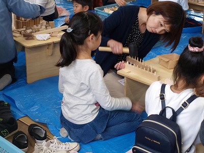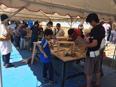 こちらは、コサインで開催されて居る「こっぱっぱ木工教室」です。毎年、100名を越えるご家族が参加されます。楽しすぎてごめんなさい。