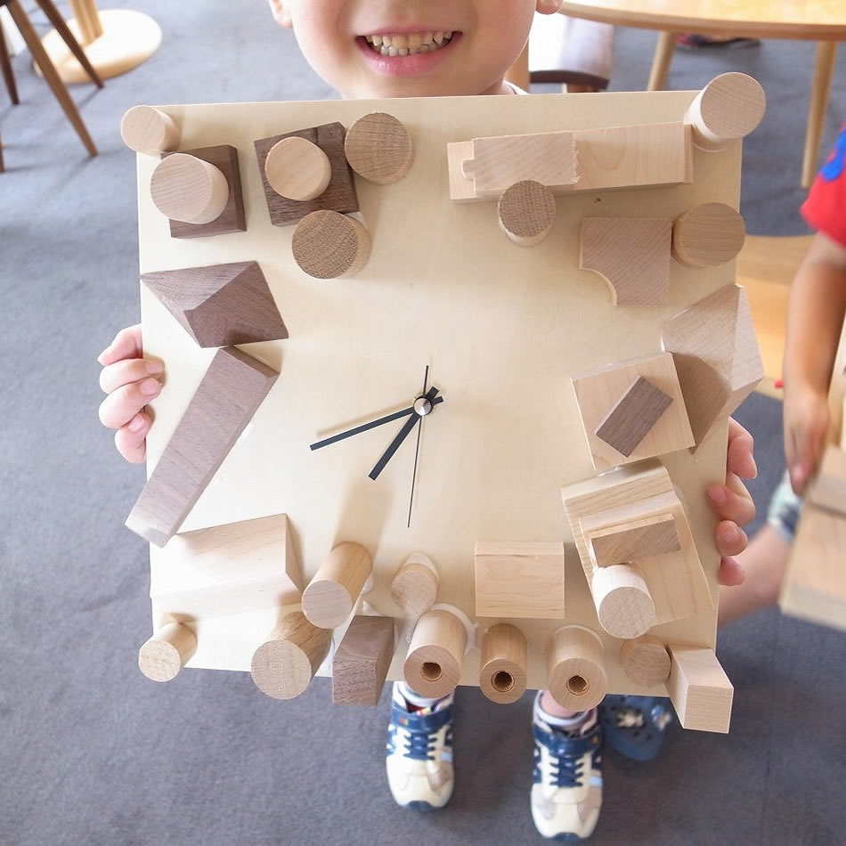 そこで、コサイン旭川本店とコサイン青山では、恒例の「夏休み!こっぱっぱ木工教室」を開催いたします!今回も大人気の時計づくりのワークショップになります。夏休みの工作(自由研究)の宿題にもぴったりです!