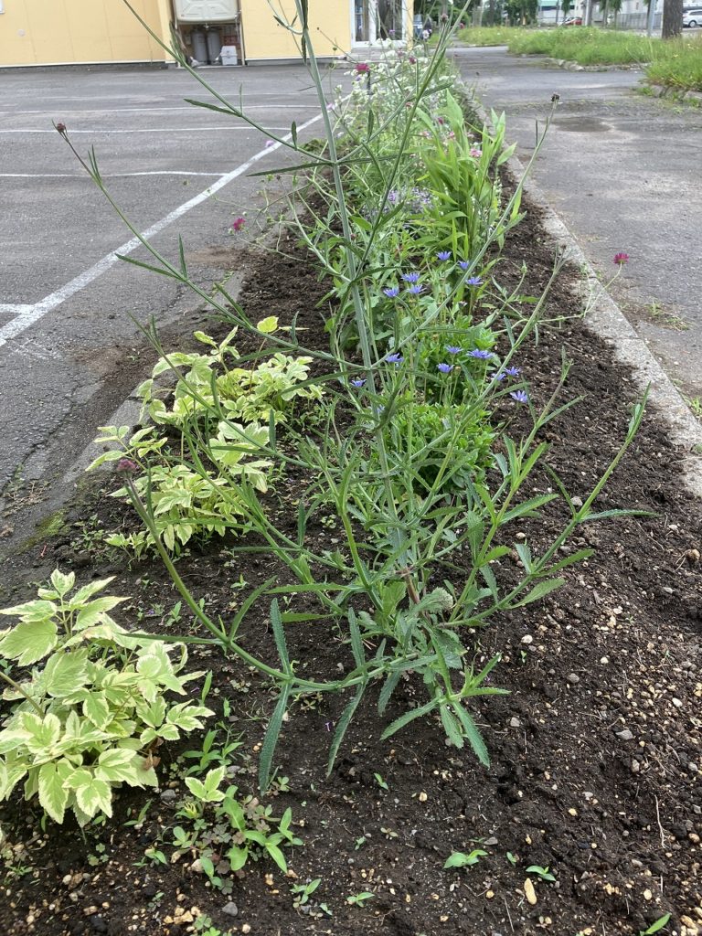 コサインの駐車場側に広がる花壇は、ガーデニングが好きな社員たちの愛情と手間が詰まった特別な場所です。そこには、17種類もの美しい草花が季節ごとに彩りを添えています。