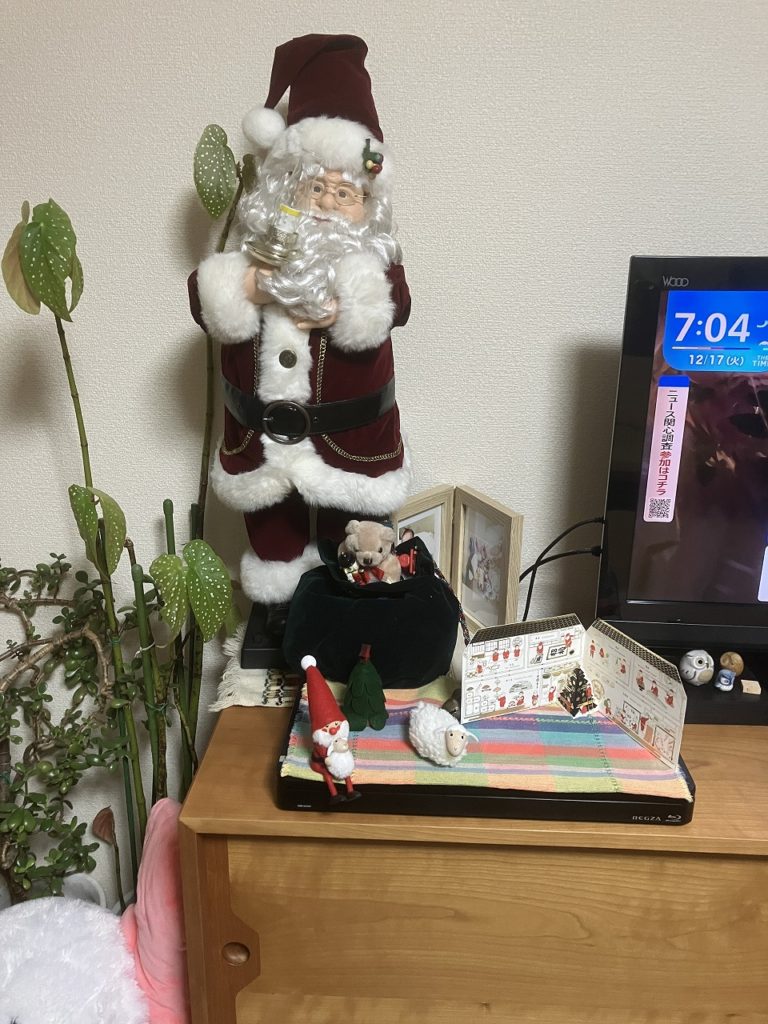 昨夜帰宅すると、家がクリスマスムード一色に飾られていました。妻がシーズンごとに楽しむようにコーディネートしたもので、部屋全体が華やかで温かい雰囲気に包まれ、疲れも忘れるほど心が和らぎました。