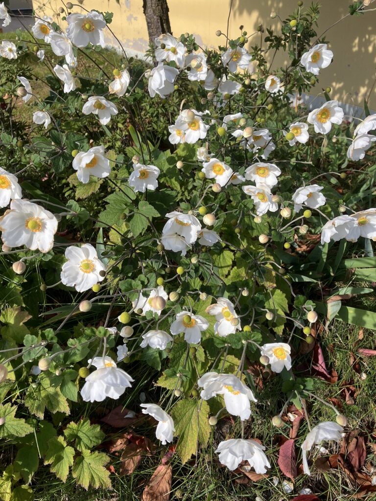 庭では、**白い秋明菊(しゅうめいぎく)**が、