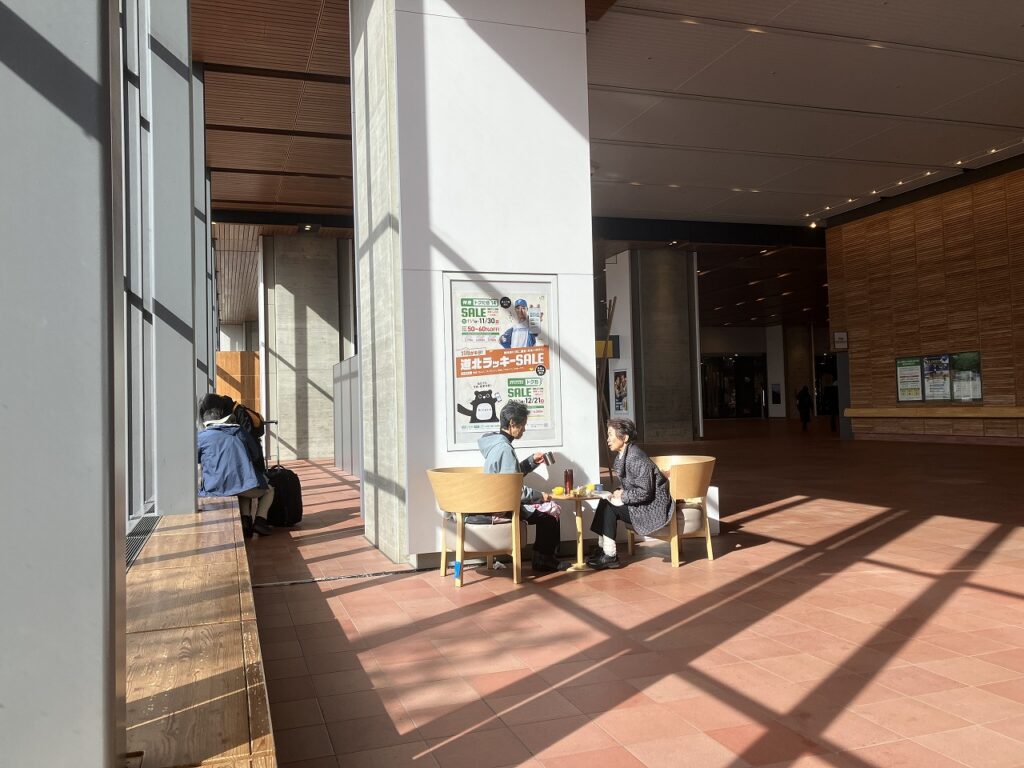 学生さんや観光の方々が自然と腰を下ろし、心地よい時間を過ごされています。