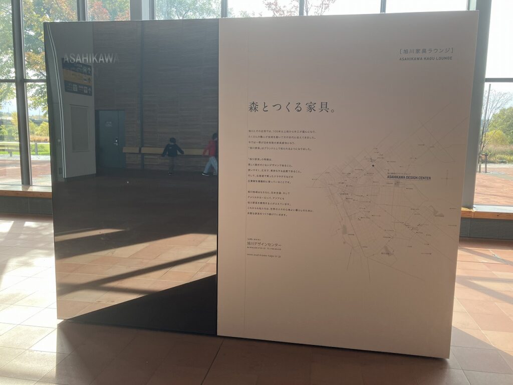 また、駅の一角には旭川家具を紹介するモニターも設置され、