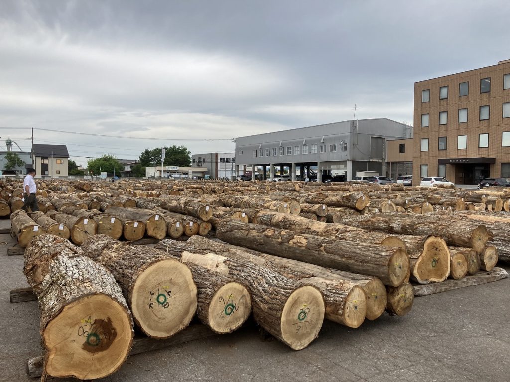 今朝の北海道新聞によると、旭川林産共同組合展示場に約2,000本のナラ、ニレ、カバなどの広葉樹材が月に一度の銘木市を待っています。輸入材の高騰により国内材への関心が高まり、国内材の価格も上昇しています。木材は家具から住宅、ウィスキーの樽まで広く使用されており、北海道内外から引き合いがあります。