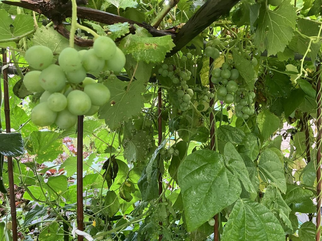 断続的に降る雨に翻弄されつつも、自然の恵みは着実に育っています。気づかないうちに大きくなりすぎたキュウリや、お隣の畑の大根、ほおずきやブドウの実りを見ると、秋の収穫が楽しみになります。🍇🥒