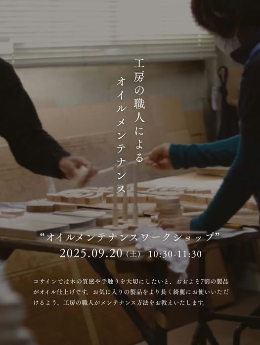 ※事前予約制です。ご自宅でお使いのコサイン製品(オイル仕上げ)が対象です。詳しくはお電話またはInstagramのDMでお申し込みください📞💌