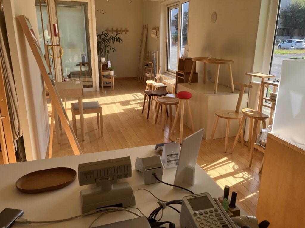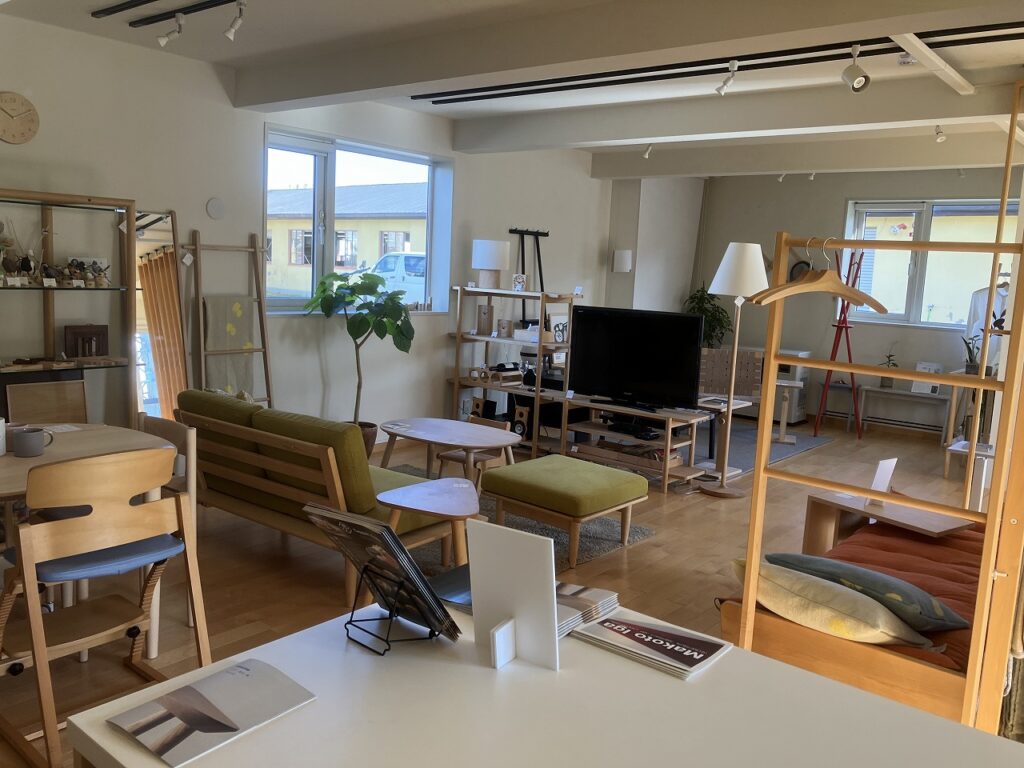 店内には木のぬくもりあふれるスツールやテーブル、時計など、暮らしを彩るアイテムが並んでいます。窓からの光が差し込む空間で、お気に入りの家具を見つける時間は特別なひととき🪑🕰