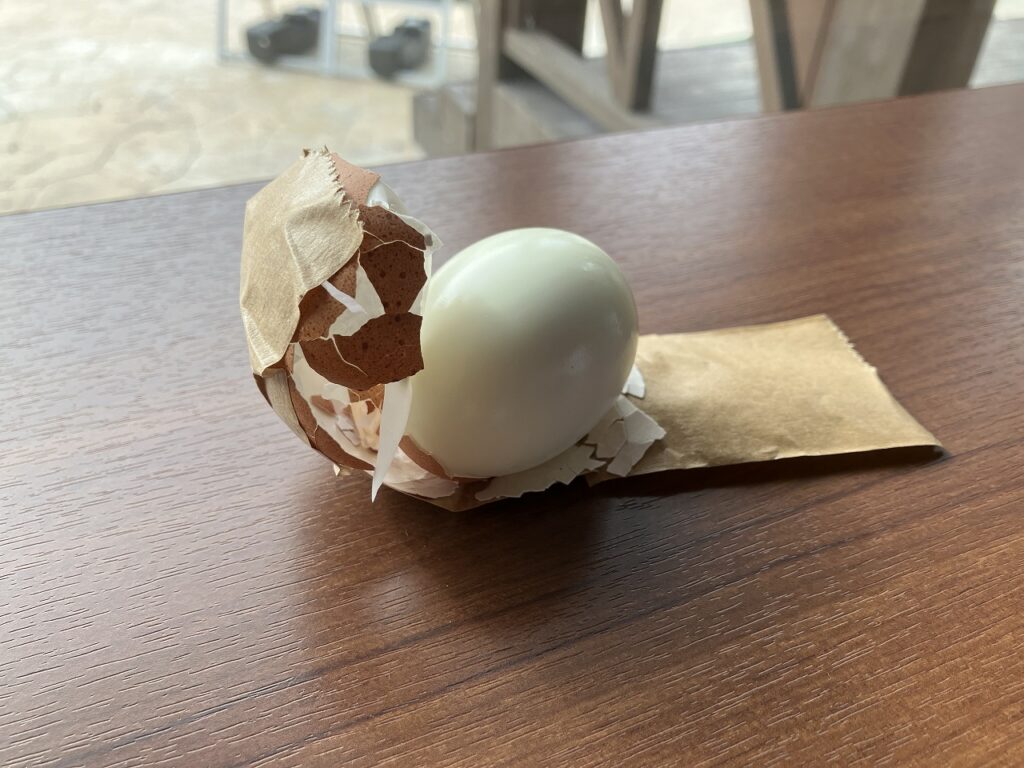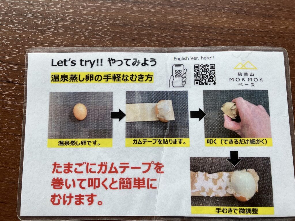以前は噴気のそばでゆで卵を作って販売していたそうですが、今は国立公園化により源泉を利用して店内でつくられています。