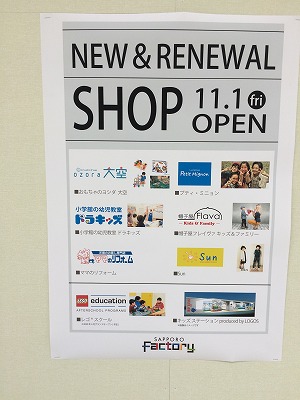 いよいよ明日、サッポロファクトリー2条館1階がリニュアルオープン。Kidsをテーマとしたお店が出来ます。