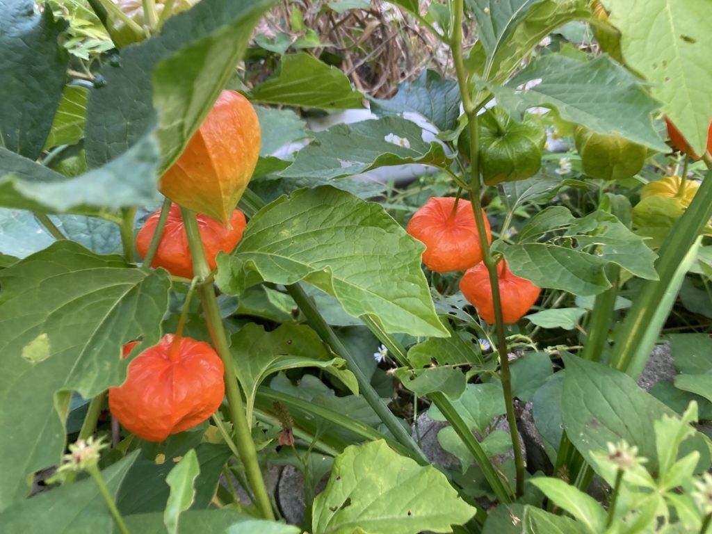 空はすっかり秋の様相です。自宅の猫の額ほどの畑や花壇も賑やかに。今年もホウズキが実を付けています。数種類のぶどうも沢山実を付け収穫が楽しみです。徒歩で2.3Km会社に出社していますが、それぞれのお宅では、ガーデンや家庭菜園野を楽しんでいます。畑が無いお宅は玄関先で、鉢に野菜を育てているのを見ながら通勤するのも楽しい。