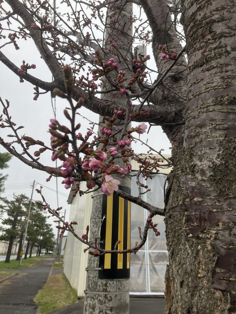あいにく朝から小雨が降っていますが、工房の桜が開花しました。旭川も開花宣言がされたとか聞きました。春が来た~!って感じです。 11社が加盟する団地の㈿旭川木工センターの各社にも桜が植えられており、団地一帯が桜に囲まれます。団地に沿って一級河川の石狩川が流れており、その堤防沿いにも桜が植えられています。このゴールデンウイークは、旭川一帯で桜を楽しめそうです。