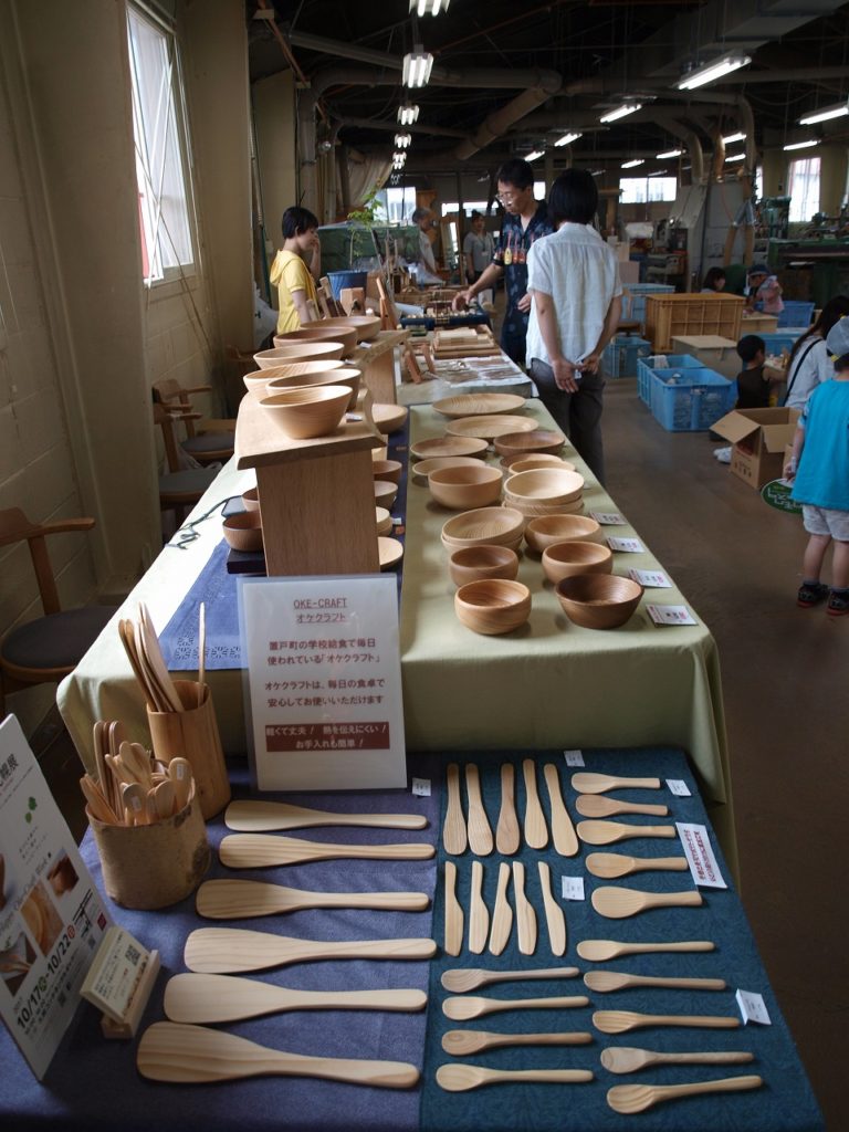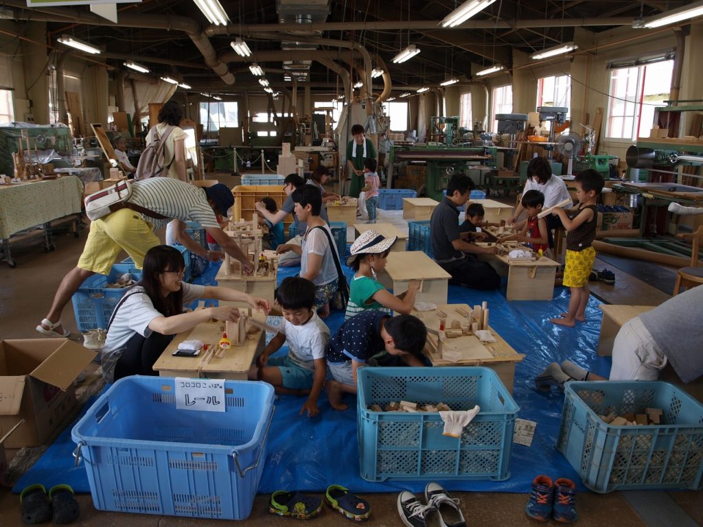 ③こっぱっぱ木工教室・DIY材料市: 木っ端を活用した掛時計、マイカー、オブジェなど参加者の発想で様々な作品が出来上がります。また、製品の部材、部品、短材、端材などの販売