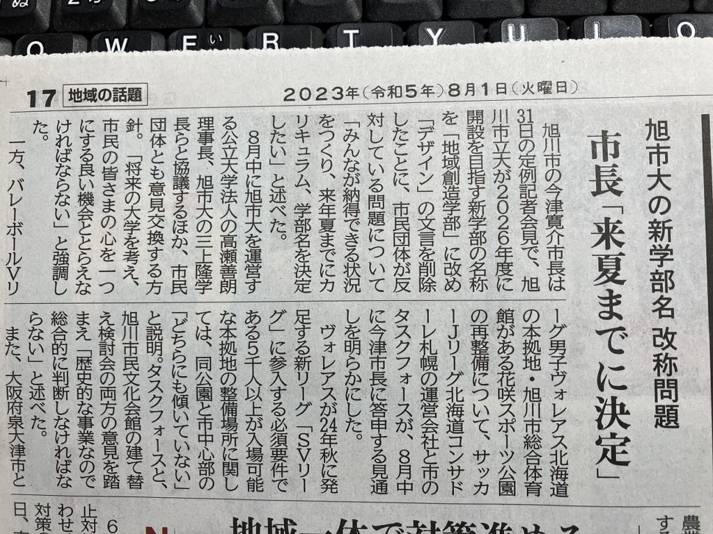 今朝は少し涼しい朝を迎えていますが、日中は30℃を超える暑さになります。それでも、本州から比べると、ありがたい気温です。2023年も残り5か月、あっという間に過ぎて雪が降り出しますね。2019年からコロナ渦で生活が一変してしまいましたが、ちょっとずつ戻りつつあります。ピンチにチャンスありで様々に進化した事もありました。インバウンドも見込めるようになりつつありますが最近、母が飴のようになめている缶入りの浅田飴が手に入いりずらくなり、妻が薬局にあたっています。これも、インバウンドのせいとも聞きます。Webショップに載っていますが、価格が2倍に。ホテル、飛行機なども同様に価格が変化します。公共機関の料金が変わらないのは、改めて感謝です。コサイン旭川本店の角にサクランボの木を何度も植えるのですが、思うように実が付いてくれないので、数年前に伐採した株の脇から新しい枝が出てきました。さて、切ってしまおうかと思いましたが、少し様子を見る事に。また、本日の朝刊に市立旭川大学の新学部の名称について市長のコメントが載ってました。
