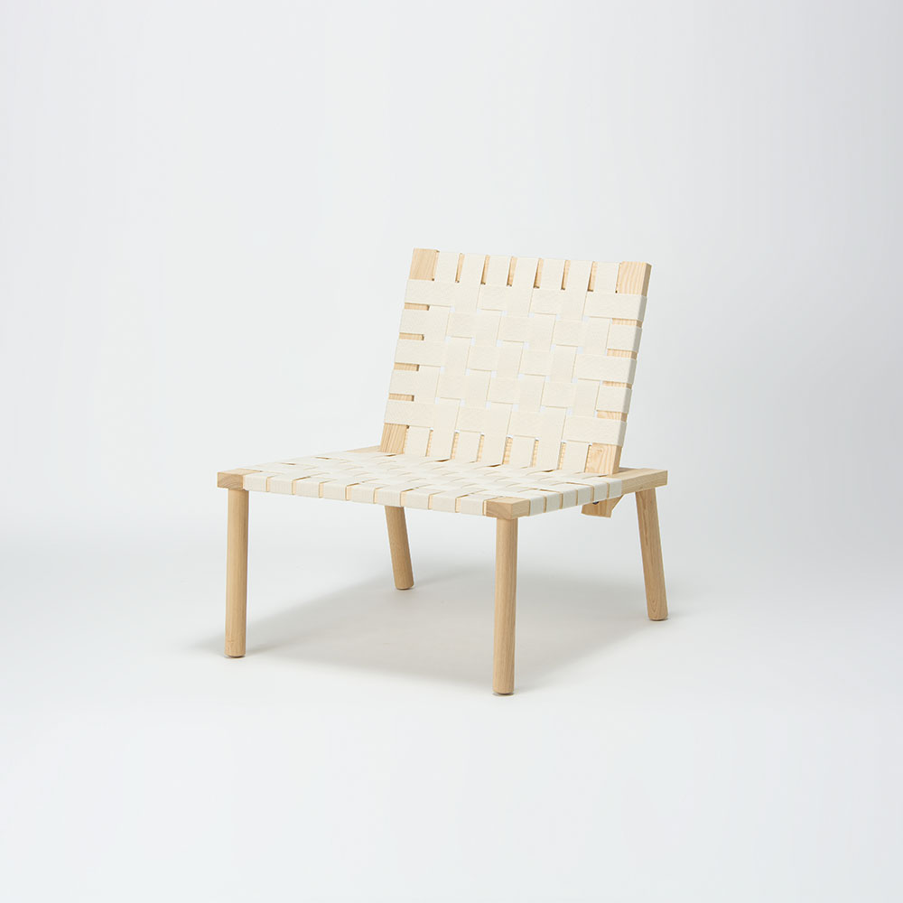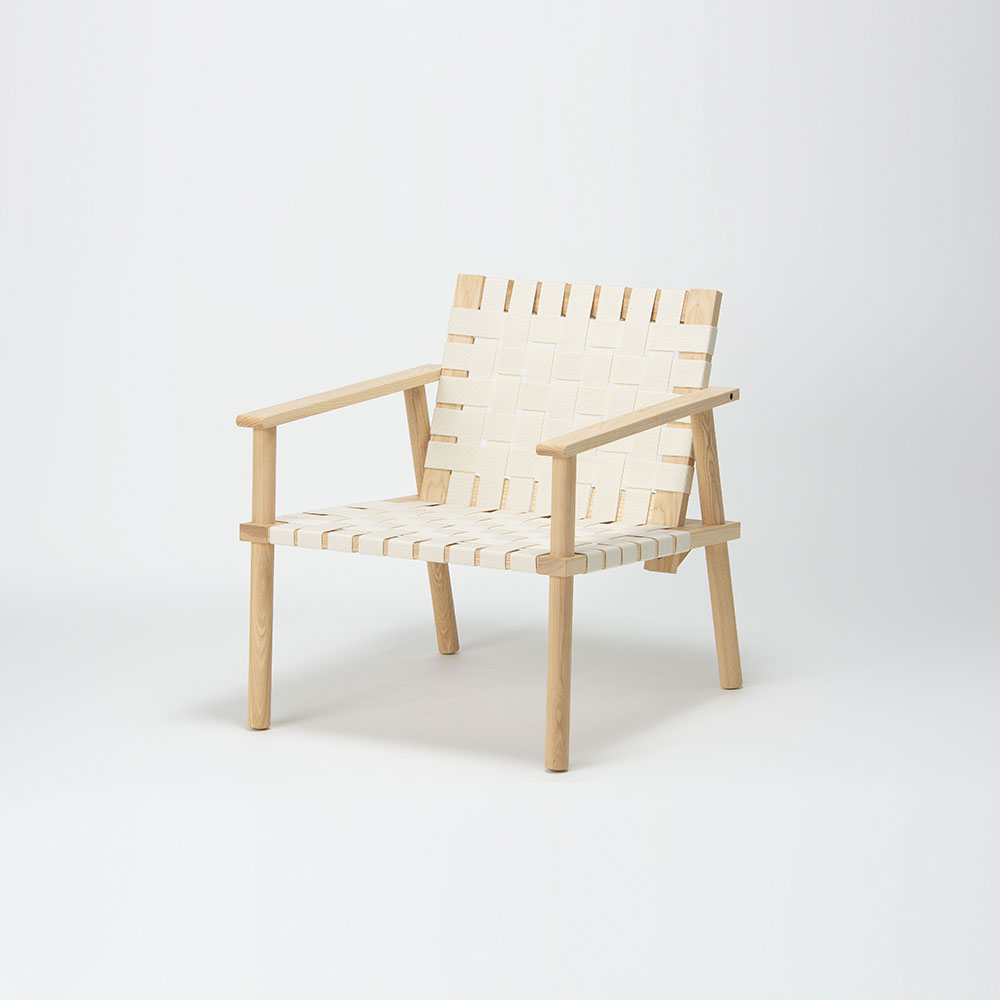 編み込まれたウェービングテープから、向こう側が透けて見えるので、木製だけど重さを感じさせずに軽い印象に仕上がったと思います。