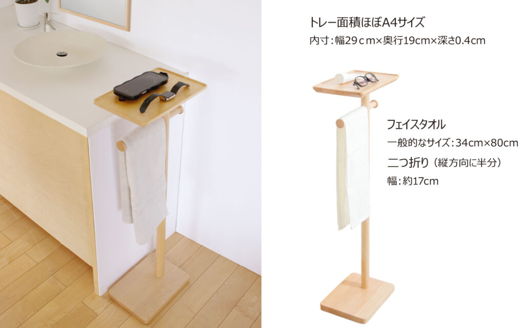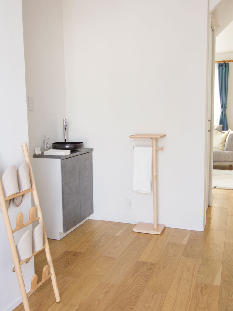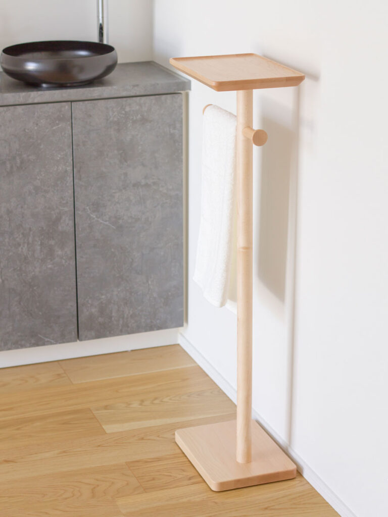 「タオルラックテーブル」は、そんな“見せる場”となった手洗いまわりに自然になじみ、木のやさしい質感が日々の手洗いシーンを心地よく整えてくれます。