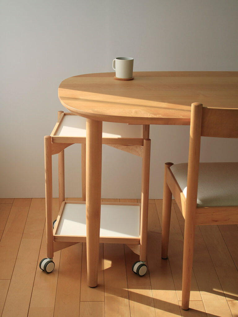 「ダンランテーブル」のサイズは2種類で、ワゴンとして使える「トレーテーブル」との組み合わせもおすすめです。