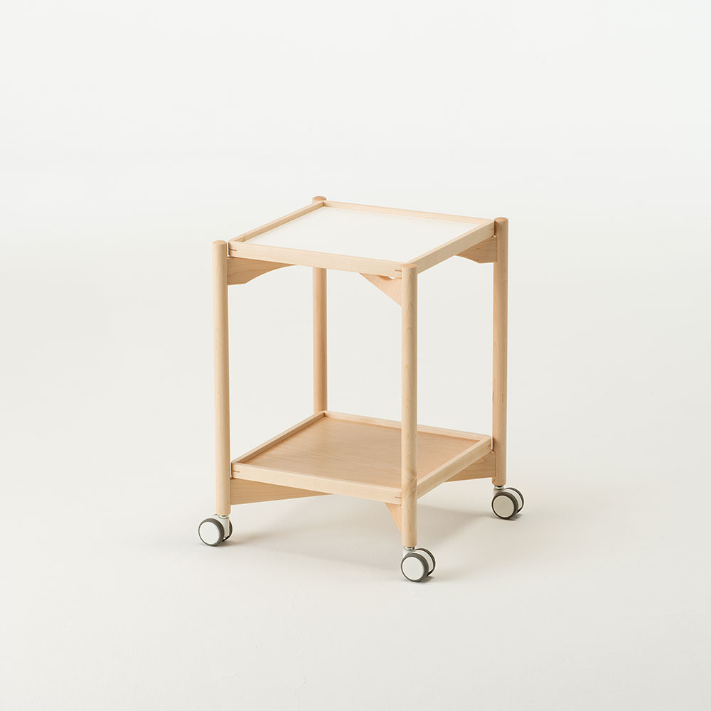 2段のトレーとキャスターを備えたテーブルで、サイドテーブルやワゴンとして活躍します。
