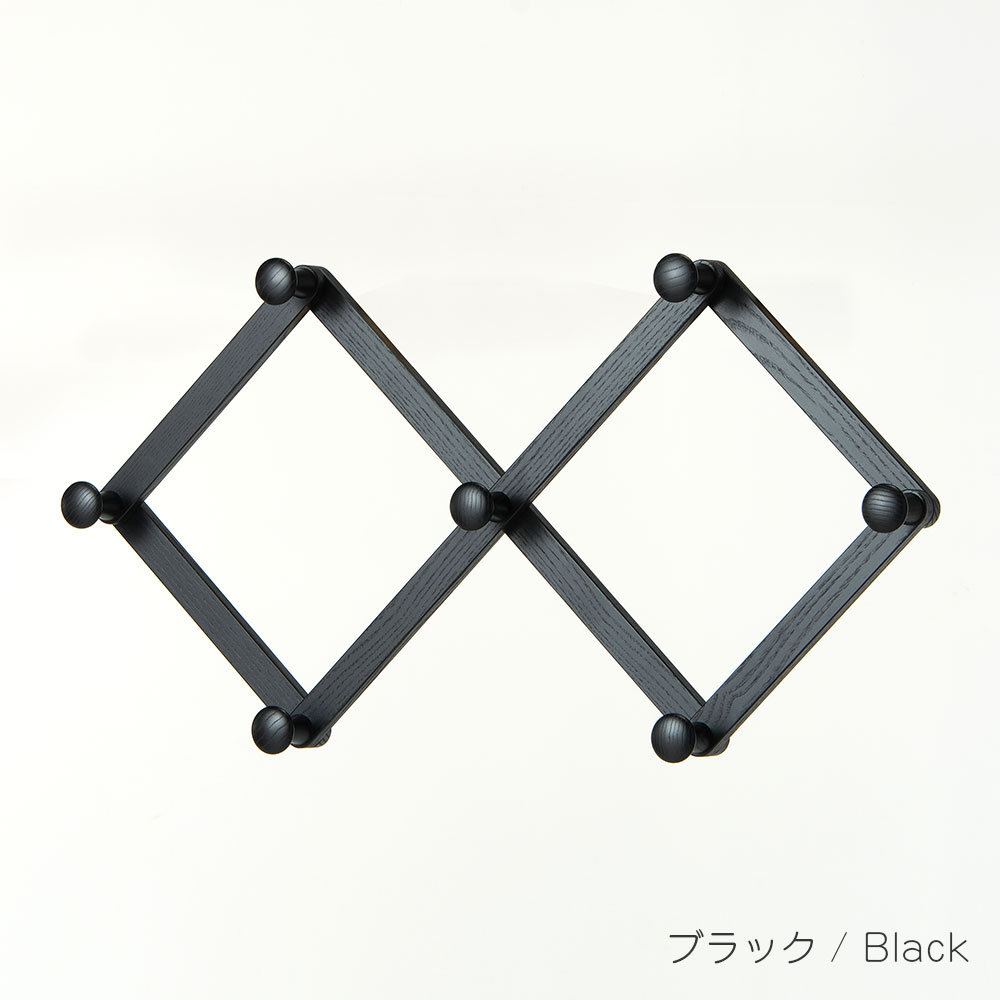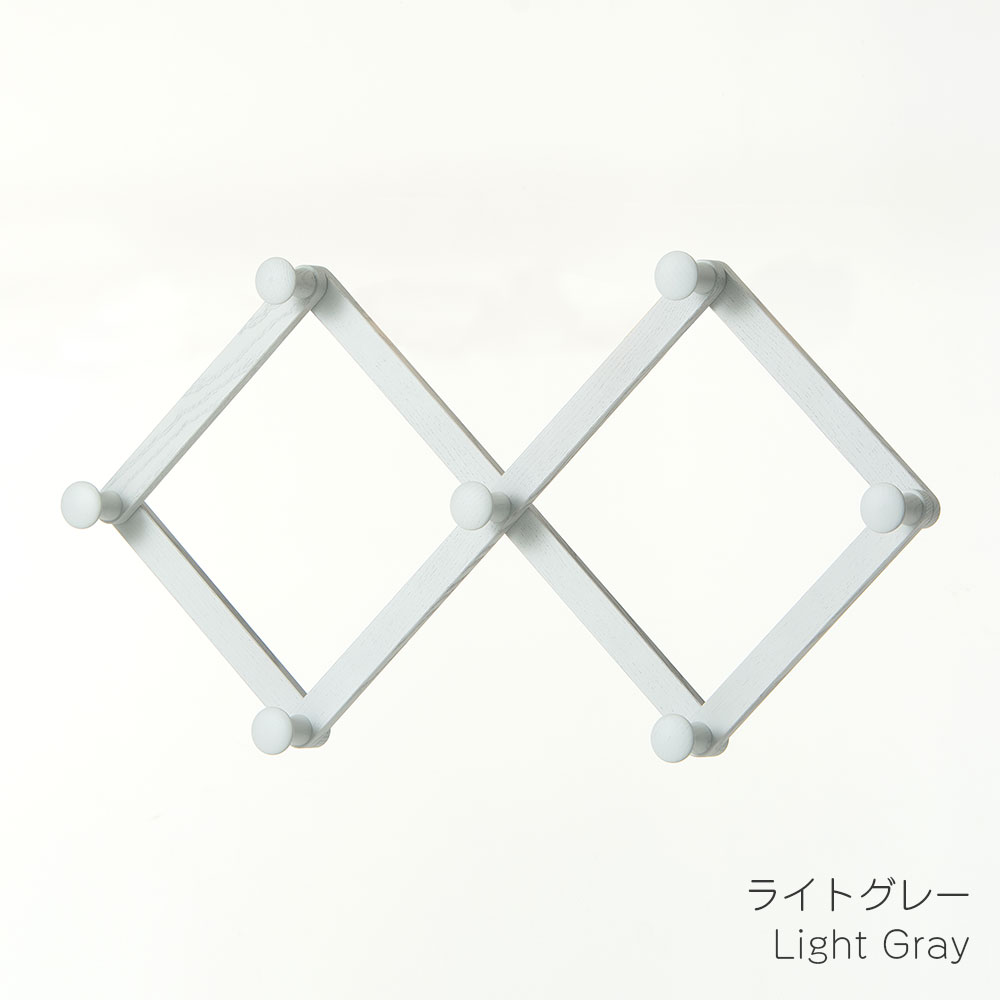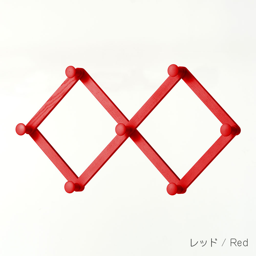アコーディオンフックは、ナチュラルに加えインテリアのアクセントになるブラック、ライトグレー、レッド、ブルーからお気に入りのカラーをお選びいただけます。