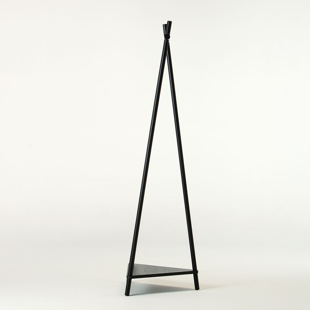 Tepee(ティピー)コーナーラックは、交差する丸棒をデザインの基調とした、ネイティブアメリカンのテント小屋の骨組みから発想を得たデザインが特徴です。
