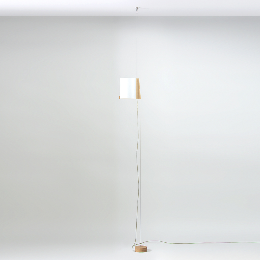 床から天井まで垂直に張られたワイヤーに沿って、シェードの高さを自由に調整することができるので、ソファ周りのくつろぎスペースやベッドサイドの照明はもちろん、部屋のコーナーや壁際の演出にもおすすめです。